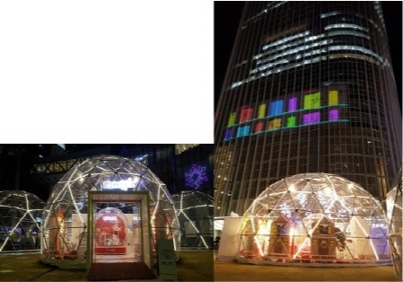 보석함처럼 빛나는 이글루와 예술 조형 작품, 그리고 초고층 빌딩을 배경으로 매일 밤 이어지는 빛의 향연은 누구든지 환상의 세계로 빠져들게 합니다.