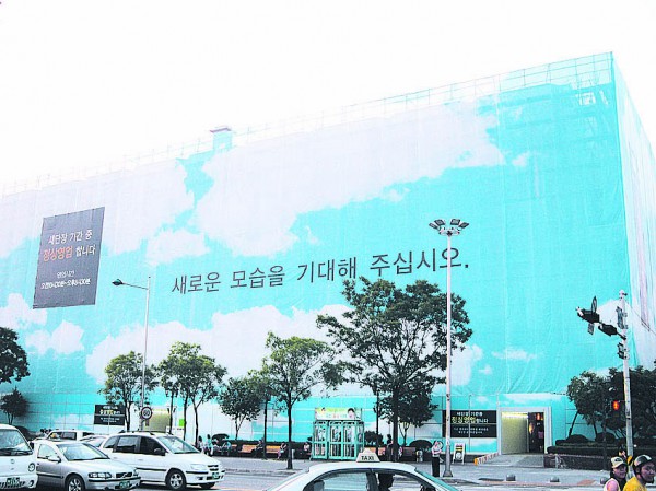 첨부한 사진은 우리나라 최고급 명품을 판매하는 갤러리아백화점이 2004년 명품관을 리뉴얼 하는 기간 동안 공사장을 가린 전경입니다. 공사장의 불결함보다 기업의 좋은 이미지를 남김으로써 기업은 최저의 비용으로 막대한 홍보효과를 실현합니다. 여기에 사용된 메쉬는 기능성 통풍직조로 제작되어 가벼우면서 바람에 강합니다. 격자무늬로 제직되었기 때문에 빌딩의 내부에서는 외부를 볼 수 있고 외부에서는 내부가 보이지 않습니다. 동시에 시각적으로 상쾌한 이미지 상승효과가 탁월합니다. 1등급 방염기능으로 화재에 안전합니다.